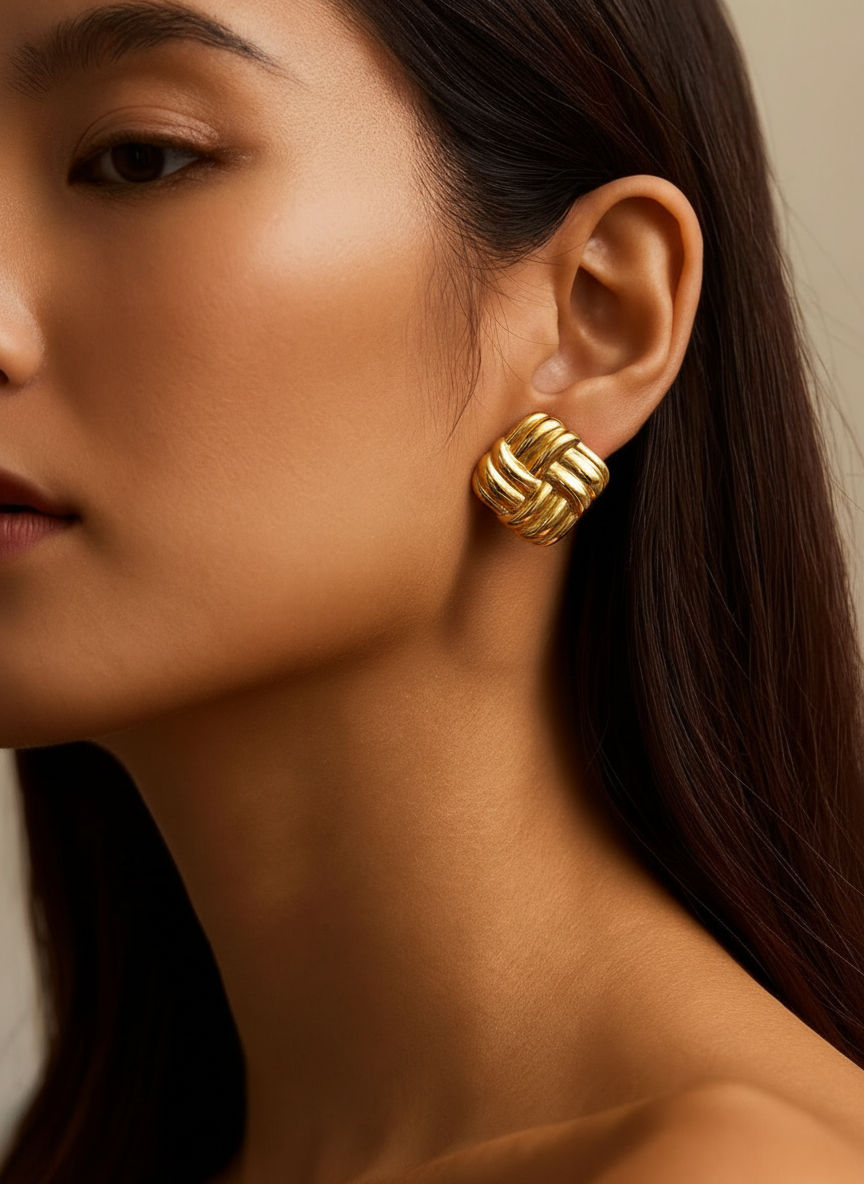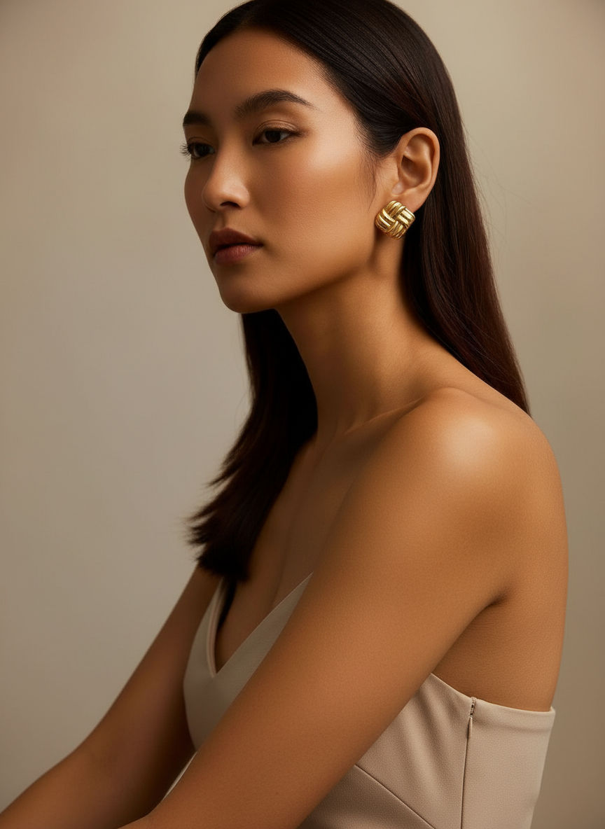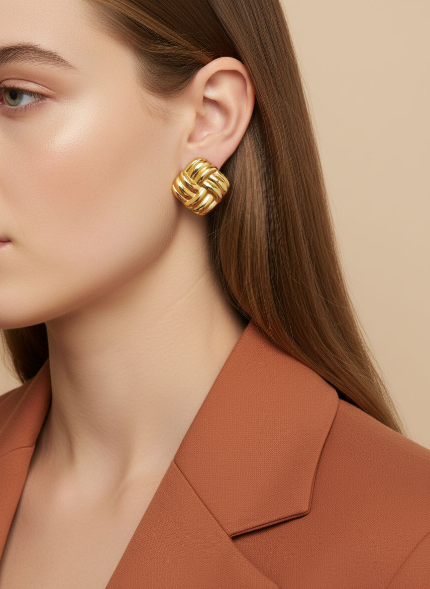 Deze goudkleurige statement knopoorbel van Tomorrow’s Favorites combineert een sculpturale, gedraaide vorm met een elegante glans. Het ontwerp doet denken aan een moderne knoop en geeft direct volume en karakter aan je look, zonder schreeuwerig te worden. Perfect voor wie houdt van minimalistische sieraden met een bold twist: stijlvol genoeg voor kantoor, chic genoeg voor diner, en ideaal om te dragen als finishing touch bij een basic outfit.